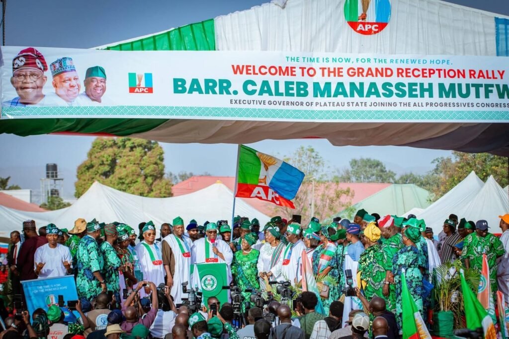 The Executive Governor of Plateau State, Barr. Caleb Mutfwang, was on Tuesday formally received into the All Progressives Congress (APC) at the Polo Field, Jos, in a historic event presided over by His Excellency, President Bola Ahmed Tinubu, GCFR, ably represented by the Vice President, Senator Kashim Shettima, alongside the national leadership of the party, thousands of party faithful, and residents of Plateau State.
