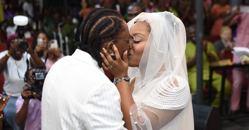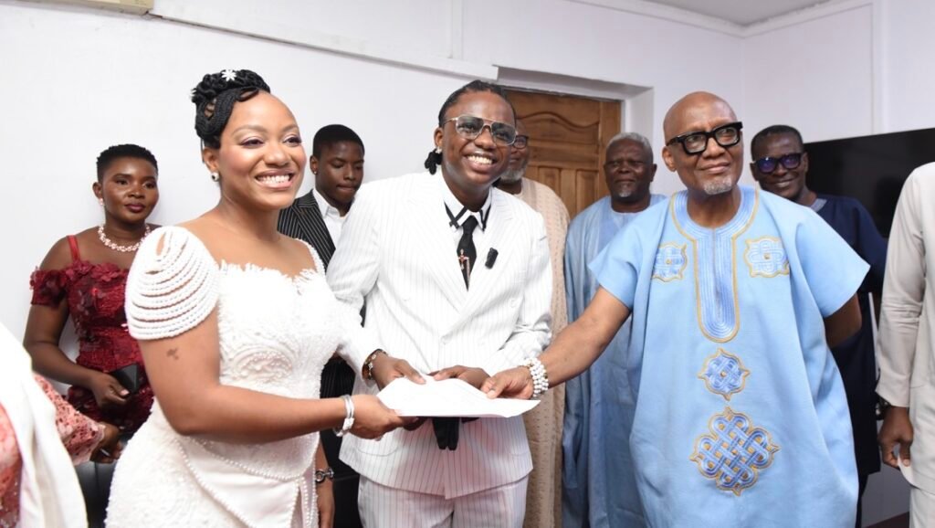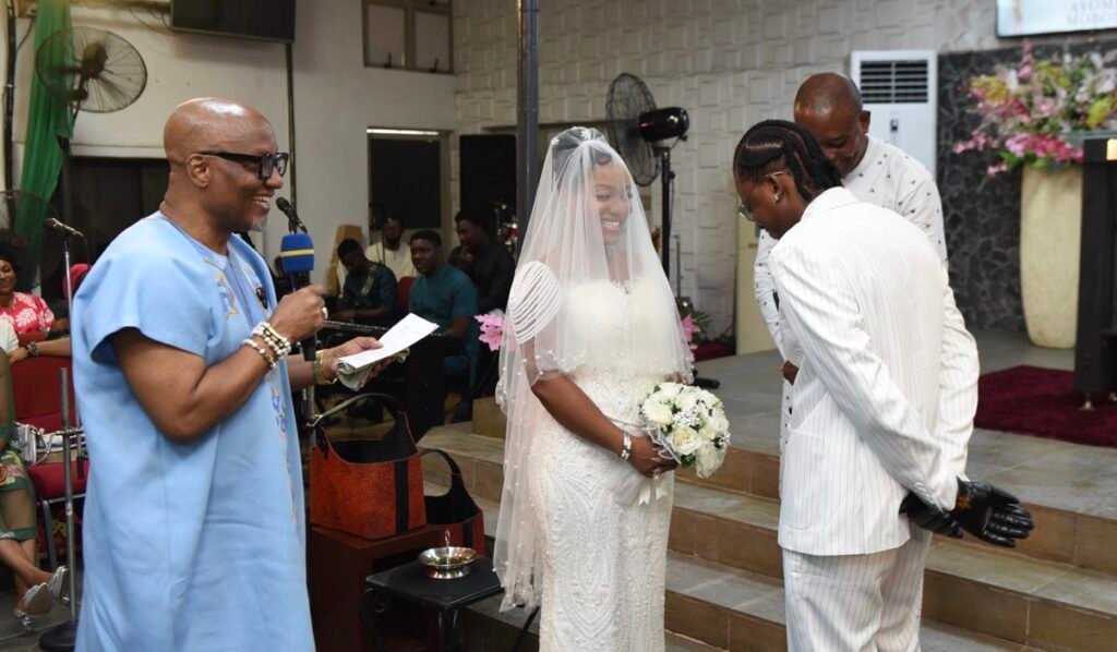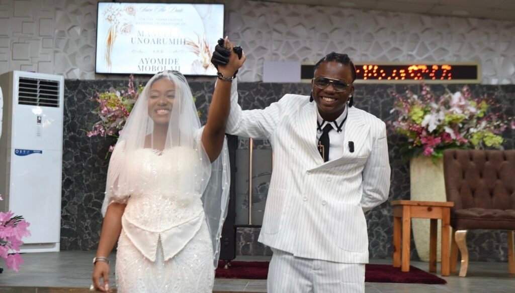 Love, grace, and destiny came beautifully together as Manuela Onotse Unoarumhi exchanged vows with Ayomide Mobolanle Mobolaji, popularly known as Obafiriyoyo.