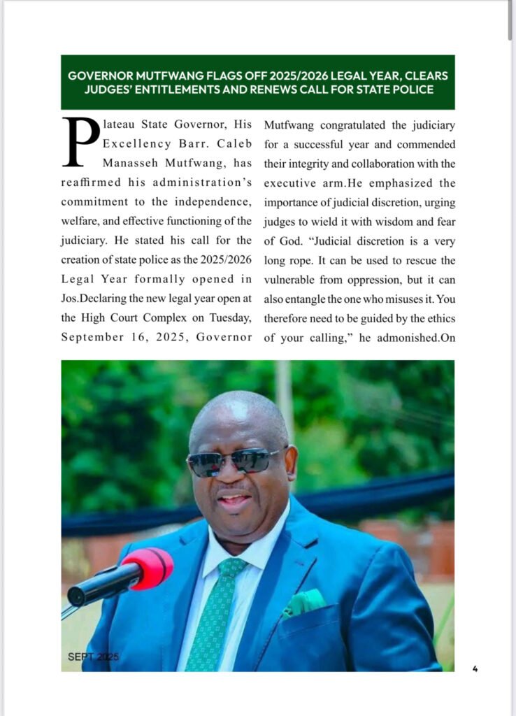 The New Face of Plateau, His Excellency, Barr. Caleb Manasseh Mutfwang Governor The Plateau State